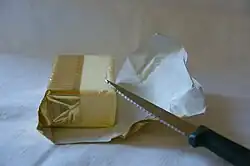 - Le beurre sec (14 % d'eau au lieu de 16), souvent utilisé comme beurre de tourage en pâtisserie, est plus dur et a un point de fusion plus élevé que le beurre gras[34]. Le beurre d'hiver est considéré comme un beurre sec, tandis que le beurre d'été est considéré comme un beurre gras. Le beurre Charentes-Poitou est également un beurre sec, tandis que les beurres de Normandie et de Bretagne sont des beurres gras.