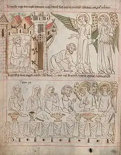 Le manuscrit était initialement composé de 200 feuilles. 188 feuilles sont conservées, contenant 747 scènes bibliques avec des commentaires brefs dans un style ressemblant à une biblia pauperum. Les illustrations sont le plus souvent exécutées dans un style simple, à l'encre ; quelques rares dessins sont coloriés.