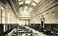 L'immeuble de style Beaux-Arts d'environ 30 000 mètres carrés (320 000 pieds carrés) abrite environ 91 kilomètres (57 miles) d'étagères à livres et 3,5 millions de volumes, mais pourrait en contenir jusqu'à 4,6 millions[3]. La collection comprend, entre autres, un exemplaire original de la Bible de Gutenberg[4].