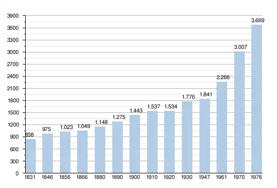 - Sources:INS, Rem:1831 jusqu'en 1970=recensements, 1976= nombre d'habitants au 31 décembre