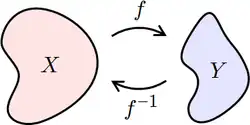 Si est une bijection d'un ensemble vers un ensemble , cela veut dire (par définition des bijections) que tout élément de possède un antécédent et un seul par . On peut donc définir une application allant de vers , qui à associe son unique antécédent, c'est-à-dire que .