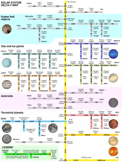 L'image ci-contre donne le delta-v requis pour différentes manœuvres à propulsion conventionnelle[5],[7]. [Note 1]