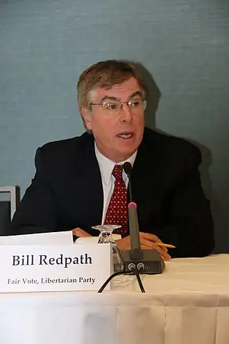 Bill Redpath, né le à Findlay (Ohio), fut le président du Parti libertarien des États-Unis. Il fut aussi candidat à la Chambre des délégués de Virginie (1993)[1], au Sénat de Virginie (1998)[2], Gouverneur du Commonwealth de Virginie (2001)[3], membre du Sénat des États-Unis (2008)[4], et de la Chambre des représentants des États-Unis (2010[5] et 2014)[6]. Redpath est également membre du conseil d'administration de Fairvote, une organisation qui propose des réformes électorales[7].