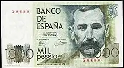 1000 Ptas | 143 × 83 mm | Vert | José de Echegaray | Banque d'Espagne | José de Echegaray | P-154 | ||||
