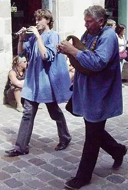 Sonneur de binioù kozh (à droite), accompagnant une bombarde.