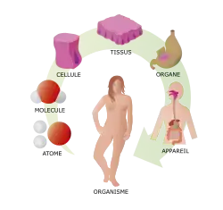 Il y a là un vaste domaine de connaissance, s'intéressant au corps humain et à chacun de ses niveaux d'organisation[1] :