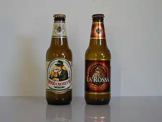 - Birra Moretti La Rossa : bière forte au malt de couleur ambrée foncé, ayant un titre alcoométrique égal à 7,2 % vol.