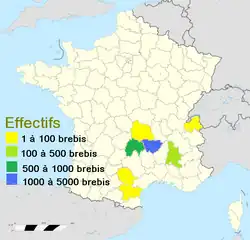 Le berceau de la race se situe entre le Cantal et la Haute-Loire, dans une zone délimitée par Saint-Flour, le col du Lioran, Allanche, Brioude et Langeac[3]. La bizet tient une place très importante dans ces départements. Par exemple, en 1963 et alors que ses effectifs ont déjà commencé à régresser, les 90 000 brebis bizets de Haute-Loire représentent tout de même 45 % des effectifs ovins de ce département[1].