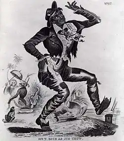 C'est cependant un autre comédien blanc, Thomas D. Rice, qui va véritablement populariser le blackface. Il introduit la chanson Jump Jim Crow et l'accompagne d'une danse dans sa pièce en 1828, ce qui l'érige au rang de vedette en 1832[9],[10]. Rice parcourt les États-Unis, sous le nom de scène de « Daddy Jim Crow ». Le nom Jim Crow deviendra étroitement rattaché à la ségrégation raciale et donnera son nom aux lois Jim Crow qui ont codifié la ré-institutionnalisation de la ségrégation raciale après la Reconstruction[11].