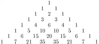 - Triangle de Pascal, pyramide de Pascal, triangle de Pascal (2,1) (combinatoire)