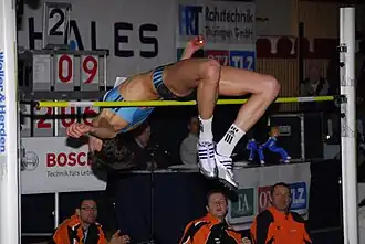 • Saut en hauteur en plein air : 2,08 m (2009) Codétentrice du record des championnats d'Europe : |