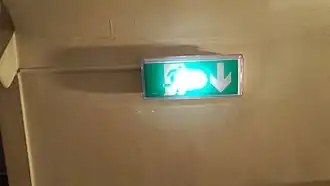 - un éclairage de sécurité d'ambiance : généralement d'une puissance comprise entre 320 et 480 lumens, il éclaire de manière uniforme l'ensemble des locaux afin que les usagers puissent se repérer où qu'ils soient et pour éviter un mouvement de panique. Cet éclairage est le plus souvent zénithal. La réglementation et les usages prévoient un éclairement minimum de 5 lm/m2 et capable de fonctionner pendant une heure ;