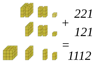 Il s'agit de manipuler des petits cubes, des réglettes de taille 10 cubes, des plaques de taille 10 cubes, des gros cubes cubes de taille 10 petits cubes etc. pour représenter des entiers dans une numération décimale.
