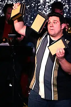 En 1977, Kris Kremo est entré dans le Livre Guinness des records en lançant une boîte puis en la rattrapant après une quadruple pirouette à l’aide des deux autres. Kristian Kristof a battu ce record en 1994 en lançant les trois boîtes et en les rattrapant après une quadruple pirouette.