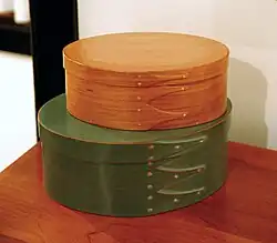La boîte à ranger shaker est un coffre rond en bois cintré fabriqué à la main. Ces boîtes sont associées à la vie populaire shaker parce qu'elles expriment l'utilité et l'uniformité, valorisées dans la culture shaker[1].