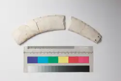 Cette pièce faisait partie d'une baguette en ivoire. Elle présente deux lions couchés sculptés de chaque côté. La partie supérieure de la baguette est perdue. Les baguettes magiques sont constituées de segments individuels reliés par des chevilles[1]. Il existe d'autres exemples provenant du Moyen Empire, où les baguettes sont en stéatite[14].