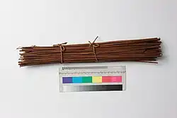 Les baguettes (aussi appelées défenses de naissance) étaient importantes pendant l'accouchement comme forme de protection. En moyenne, les femmes vivaient de deux à quatre ans de moins que les hommes en raison de complications pendant l'accouchement. Pour cette raison, de nombreux sorts et amulettes ont été créés pour protéger les femmes et les enfants[11]. Les baguettes sont toujours faites d'ivoire d'hippopotame à des fins symboliques. Le dieu Seth et la déesse Taouret (déesse égyptienne protectrice de l'accouchement et de la fertilité) sont associés à ce pouvoir. L'exhibition d'animaux puissants était censée permettre à la personne de canaliser ces pouvoirs. L'image de Taouret peut être vue sur de nombreuses baguettes magiques avec d'autres dieux protecteurs[12]. Les chacals sont aussi parfois vus sur les baguettes car ils sont corrélés à la fertilité[13]. Quatre baguettes en ivoire ont été découvertes dans la boîte du magicien. Toutes sont similaires en taille et en matériau, mais les images sur les baguettes varient.