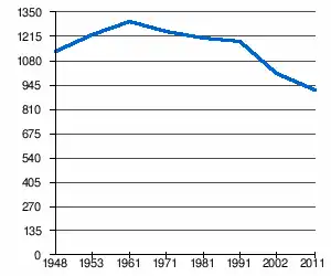 | 1 135 | 1 225 | 1 302 | 1 244 | 1 205 | 1 185 | 1 012[2] | 916[1] |