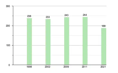 En 2021, le village de Bożejewice comptait 188 habitants, en diminution de −21,01 % par rapport à 1998[6]. En 2021, 66 % des habitants du village de Bożejewice étaient en âge de travailler (entre 18 et 64 ans pour les hommes et 18 et 59 ans pour les femmes). 14,4 % des habitants avaient moins de 18 ans et 19,7 % avaient l'âge légal de la retraite. Les personnes en âge de travailler représentaient 59,5 % de la population de la voïvodie de Couïavie-Poméranie et 59,5 % de la population de Pologne. Ainsi, le taux de dépendance démographique du village de Bożejewice est inférieur à celui de la voïvodie de Couïavie-Poméranie et inférieur à celui de la Pologne[7].