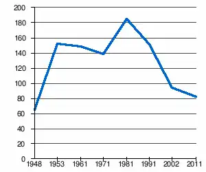- 1 2 (sr + en) « Livre 20 : Vue d'ensemble comparative de la population en 1948, 1953, 1961, 1971, 1981, 1991, 2002 et 2011, données par localités) » [PDF], pages du recensement de 2011 en Serbie - Institut de statistique de la république de Serbie, (consulté le )