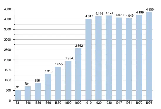 - Sources : INS, Rem. : 1831 jusqu'en 1970 = recensements, 1976 = nombre d'habitants au 31 décembre.