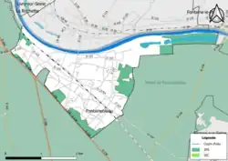 L'occupation des sols de la commune, telle qu'elle ressort de la base de données européenne d’occupation biophysique des sols Corine Land Cover (CLC), est marquée par l'importance des territoires artificialisés (63 % en 2018), en augmentation par rapport à 1990 (60,8 %). La répartition détaillée en 2018 est la suivante : zones urbanisées (52,37 %), forêts (27,87 %), espaces verts artificialisés non agricoles (10,67 %), eaux continentales[Note 8] (8,60 %), milieux à végétation arbusive et/ou herbacée[Note 9] (0,50 %)[33].