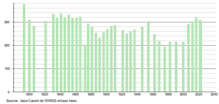 302 hab. (2022 en évolution de −5,62 % par rapport à 2016)