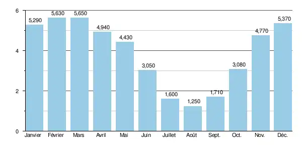 À l'étiage, le VCN3 peut chuter jusque 0,320 m3/s, en cas de période quinquennale sèche, soit 320 litres par seconde, ce qui n'est pas encore trop sévère.