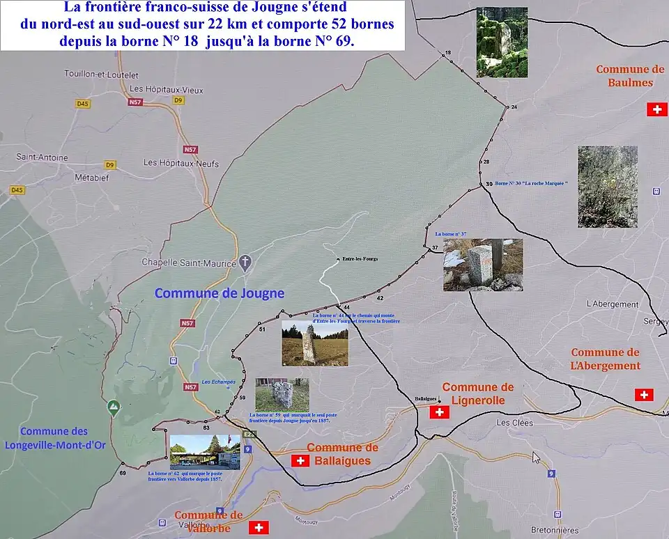 | Bornes frontière entre Jougne et la Suisse | |