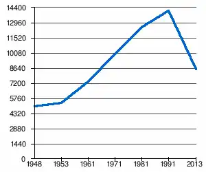 En 1991, sur un total de 34 138 habitants, la population se répartissait de la manière suivante[4] :