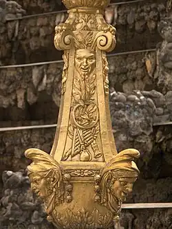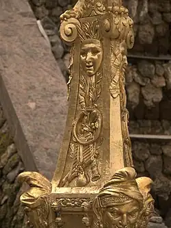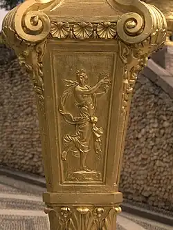 Côté gradins, les quatre torchères de Noël Jouvenet et Pierre Mazeline, portées par des pattes de lion, sont ornées de reliefs d’instruments de musique et de figures de danseuses tenant des instruments de musique[2].