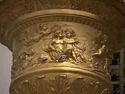Côté cascade, les quatre torchères de Pierre Legros et Benoît Massou, sont portées par des pieds de bœuf : le piètement est orné de scènes de chérubins.