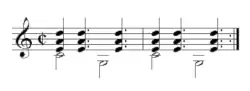 Les basses sont jouées sur tonale et quinte, avec plusieurs progressions possibles, voici un exemple :
