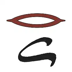 | C'est un idéogramme du numérateur 1, le terme r(ȝ) : | signifiant « partie (fractions) »[2]. |
