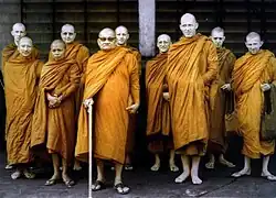 Cependant, relève B. Faure[n 7], le bouddhisme, « qui est sans conteste l'une des plus anciennes religions de salut[60] », a été très souvent considéré par l'orientalisme occidental (né au début du XIXe siècle) avant tout comme une philosophie, les savants européens et américains rejetant les aspects religieux que sont les éléments de rituel[n 8], de mythologie ou de métaphysique[61]. Ce discours fut repris par les élites autochtones, qui cherchèrent à mettre de côté les éléments de la tradition au profit des seuls aspects rationnels philosophiques, psychologiques ou éthiques du bouddhisme[62]. Démarche artificielle qui aboutit à « [une recréation ayant] peu à voir avec la réalité »[60]. Car nier les aspects rituels revient à créer un bouddhisme idéalisé qui masque des réalités sociologiques évidentes témoignant de la religiosité dans le bouddhisme en Asie (offrandes, lampes devant les autels, pèlerinages vers des lieux saints, rites funéraires, etc.) et de ce fait selon J.-N. Robert celui-ci a bien le caractère de religion, « entendu au sens naïf d'ensemble de pratiques et de croyances menant au salut »[63].