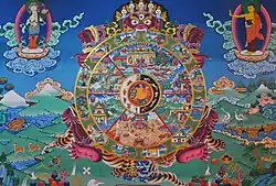 Les notions de dieu et de divinité dans le bouddhisme sont particulières : bien que le bouddhisme soit souvent perçu comme une religion sans dieu créateur[n 1], cette notion étant absente de la plupart des formes du bouddhisme[n 2], la vénération et le culte du Bouddha historique Siddhartha Gautama en tant que bhagavat jouent un rôle important dans le Theravāda tout comme dans le Mahāyāna, qui voient en ce personnage un être éveillé doté d’un triple corps[n 3].