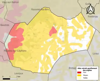 Le retrait-gonflement des sols argileux est susceptible d'engendrer des dommages importants aux bâtiments en cas d’alternance de périodes de sécheresse et de pluie. 81 % de la superficie communale est en aléa moyen ou fort (84,7 % au niveau départemental et 48,5 % au niveau national). Sur les 192 bâtiments dénombrés sur la commune en 2019, 162 sont en aléa moyen ou fort, soit 84 %, à comparer aux 86 % au niveau départemental et 54 % au niveau national. Une cartographie de l'exposition du territoire national au retrait gonflement des sols argileux est disponible sur le site du BRGM[22],[23].