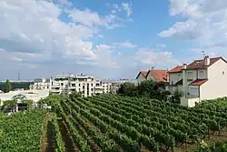 - No 73, autre entrée 4 rue du Pas-Saint-Maurice : vignes de Suresnes[4]. Dans le sillage d'une tradition municipale viticole ancienne mais alors que l'industrialisation et l'urbanisation ont presque fait disparaître les vignes du territoire suresnois, la municipalité achète en 1926 ce terrain dit du Pas Saint-Maurice, alors une ancienne carrière de gypse[5]. Le maire Henri Sellier y fait planter quelques ceps. En 1965, l'adjoint au maire et petit-fils de maître de chais bordelais Étienne Lafourcade[6] fait planter des cépages blancs (85 % de chardonnay et 15 % de sauvignon) sur 70 ares. À partir de 1983, la plantation et la vinification sont professionnalisées, le domaine passant à un hectare[7].