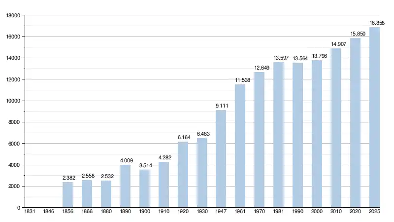 - Source : DGS - Remarque: 1831 jusqu'à 1981=recensement; depuis 1990=nombre d'habitants chaque 1er janvier[3]