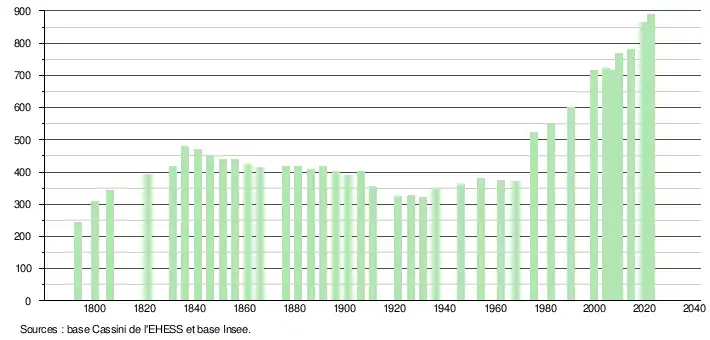 - ↑ Population municipale de référence en vigueur au 1er janvier 2025, millésimée 2022, définie dans les limites territoriales en vigueur au 1er janvier 2024, date de référence statistique : 1er janvier 2022.