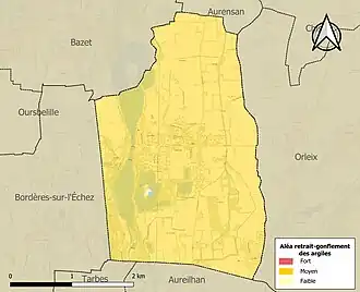 Les communes les plus proches[Note 1] sont[3] : Bazet (2,0 km), Orleix (2,2 km), Chis (2,9 km), Aurensan (3,3 km), Aureilhan (3,7 km), Oléac-Debat (3,7 km), Sabalos (3,8 km), Bordères-sur-l'Échez (4,1 km).