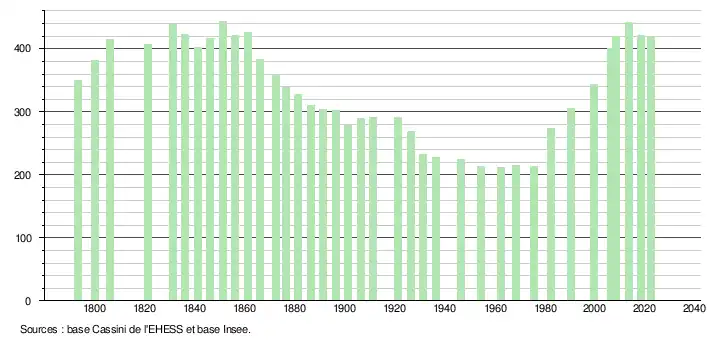 - ↑ Fiches Insee - Populations de référence de la commune pour les années 2006, 2007, 2008, 2009, 2010, 2011, 2012, 2013, 2014, 2015, 2016, 2017, 2018, 2019, 2020, 2021 et 2022.