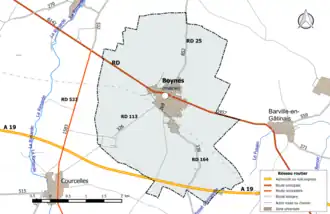 Réseau routier principal de la commune de Boynes (avec indication du trafic routier 2014).