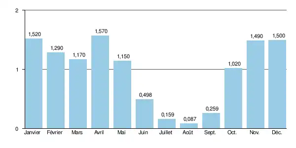 - Débit maximal : 107 m3/s le 5 novembre 1994