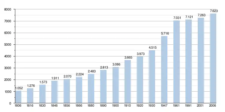 - Source : DGS - Remarque: 1831 jusqu'à 1981=recensement; depuis 1990=nombre d'habitants chaque 1er janvier[3]