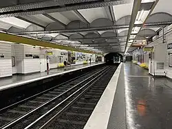 Comme un tiers des stations du réseau entre 1974 et 1984, les quais sont modernisés par l'adoption du style décoratif « Andreu-Motte », de couleur jaune avec le remplacement des faïences biseautées d'origine par du carrelage blanc plat en l'occurrence. Dans le cadre du programme « Un métro + beau » de la RATP, les couloirs sont rénovés à leur tour du au , nécessitant la fermeture de la station au public pendant toute la durée des travaux. La salle de distribution perd alors son revêtement de sol en asphalte noir au profit d'un carrelage gris anthracite.