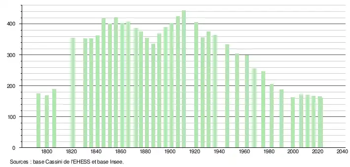 - ↑ Fiches Insee - Populations de référence de la commune pour les années 2006, 2007, 2008, 2009, 2010, 2011, 2012, 2013, 2014, 2015, 2016, 2017, 2018, 2019, 2020, 2021 et 2022.