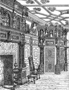 La maison contient plusieurs éléments remarquables. La grande salle avec un toit à poutres en marteau du début du XVIe siècle, l'une des plus ornées du Devon, comparable à celles de Weare Giffard Hall et d'Orleigh Court. Il est rénové en 1860. Plusieurs blasons héraldiques de membres de la famille Walrond empalés avec les armoiries de leurs épouses sont peints sur les murs. La salle de musique, comme l'appelait la famille Walrond en 1910[2], Parlour ou "salle espagnole" contient un plafond en plâtre très décoré avec des nervures et des pendentifs et des boiseries exceptionnellement finement sculptées. Au-dessus des lambris se trouve une frise de cuir espagnol.