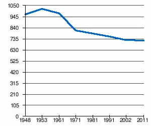 | 968 | 1 018 | 975 | 812 | 785 | 757 | 724[2] | 717[1] |