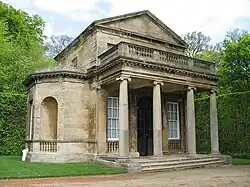 Construite à l'origine comme temple palladien, elle est ensuite utilisée comme orangerie, pavillon d'été, puis consacrée comme chapelle vers 1906.